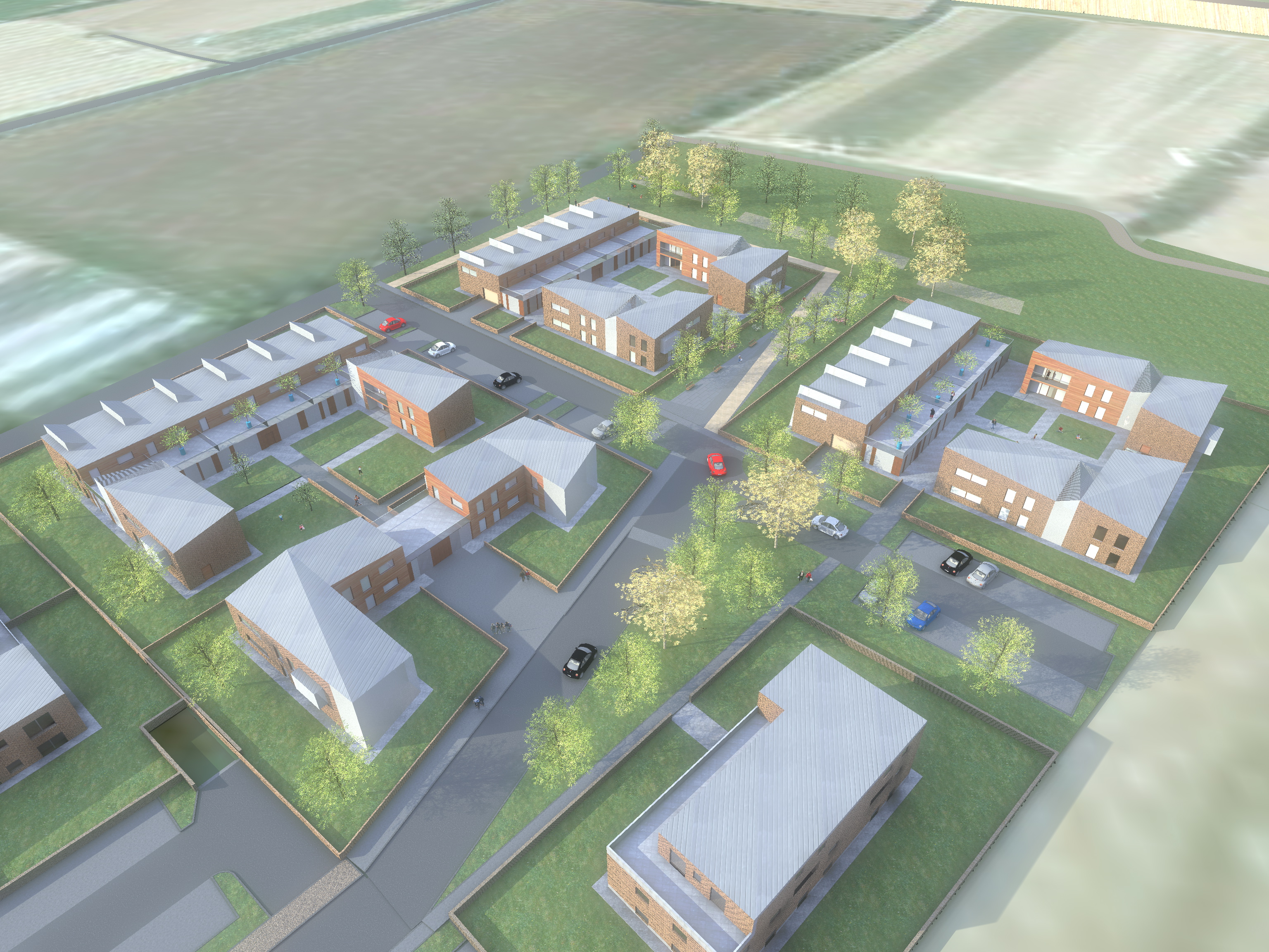 Il progetto per un nuovo insediamento prevalentemente residenziale fa propri i concetti di sostenibilità, intesa come il giusto utilizzo delle risorse, in equilibrio col contesto ambientale e socio – economico. La sfida progettuale è stimolare il cittadino a tendere verso una nuova sensibilità nell’utilizzo degli spazi e delle risorse comuni. Le scelte urbanistiche e architettoniche concorrono insieme alle scelte tecnologiche e funzionali a perseguire l’obiettivo della sostenibilità. Ciò significa che non è stato considerato sufficiente elevare il comfort abitativo e le prestazioni di contenimento energetico adottando soluzioni di sola natura tecnica. Il progetto si pone come obiettivo anche quello di interpretare le nuove esigenze dell’abitare. Sono stati individuati diversi problemi cui oggi è necessario dare risposta: la percezione di sicurezza nello stare nella propria casa; la necessità di non dover rinunciare alla propria privacy; per chi sceglie gli ambiti più inurbati la comodità negli spostamenti per le necessità primarie, ma se possibile in un contesto gradevole. Ogni miglioramento tecnologico e prestazionale degli edifici produce un beneficio parziale se il contesto naturale e progettato dall’uomo non fornisce condizioni ottimali di vita. Ciò si ottiene inserendo i nuovi edifici per la residenza in un contesto dotato di ampi spazi liberi, contaminati al minimo dalla promiscuità veicolare, dotati di spazi esterni con la corretta gerarchia fra spazi privati, spazi comuni e spazi pubblici, facilità di rapporti con le altre aree del territorio, utilizzando modi diversi della mobilità. Significa anche richiamarsi ai modelli di organizzazione urbana ed alle tipologie più interessanti, tramandatoci dalla tradizione locale e storica, quale il modello dell’edificio a corte, nato proprio in un contesto agricolo quale è l’origine del nostro nucleo storico.