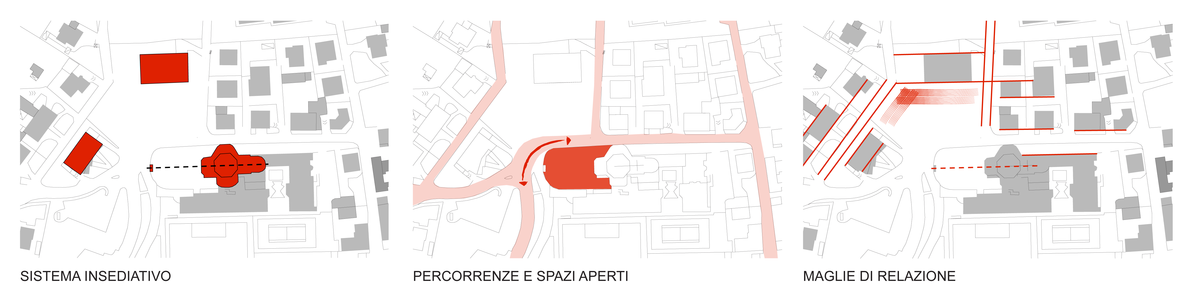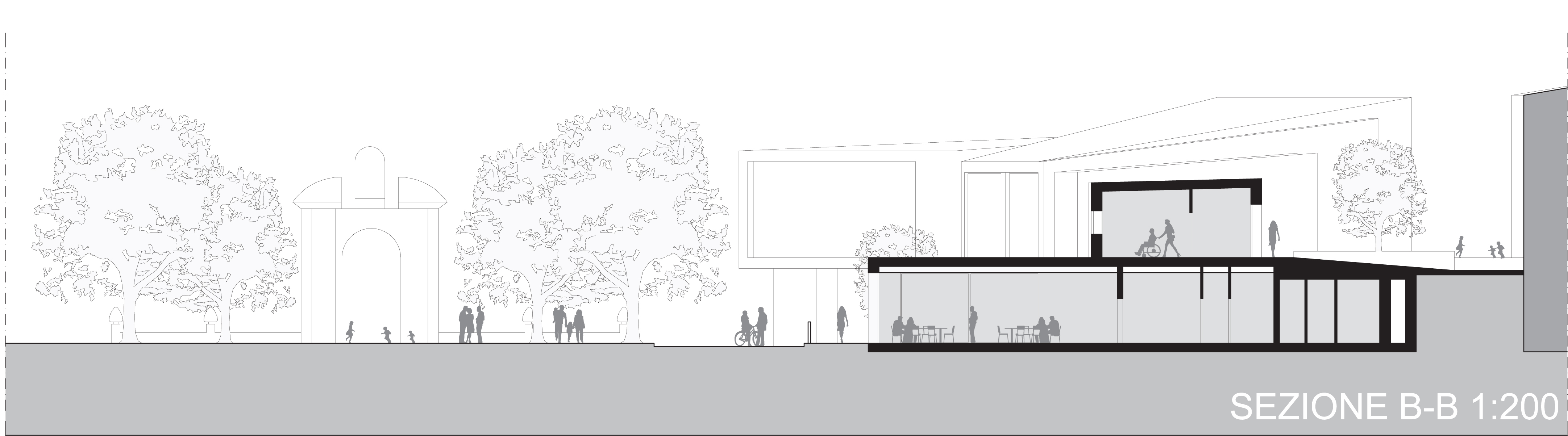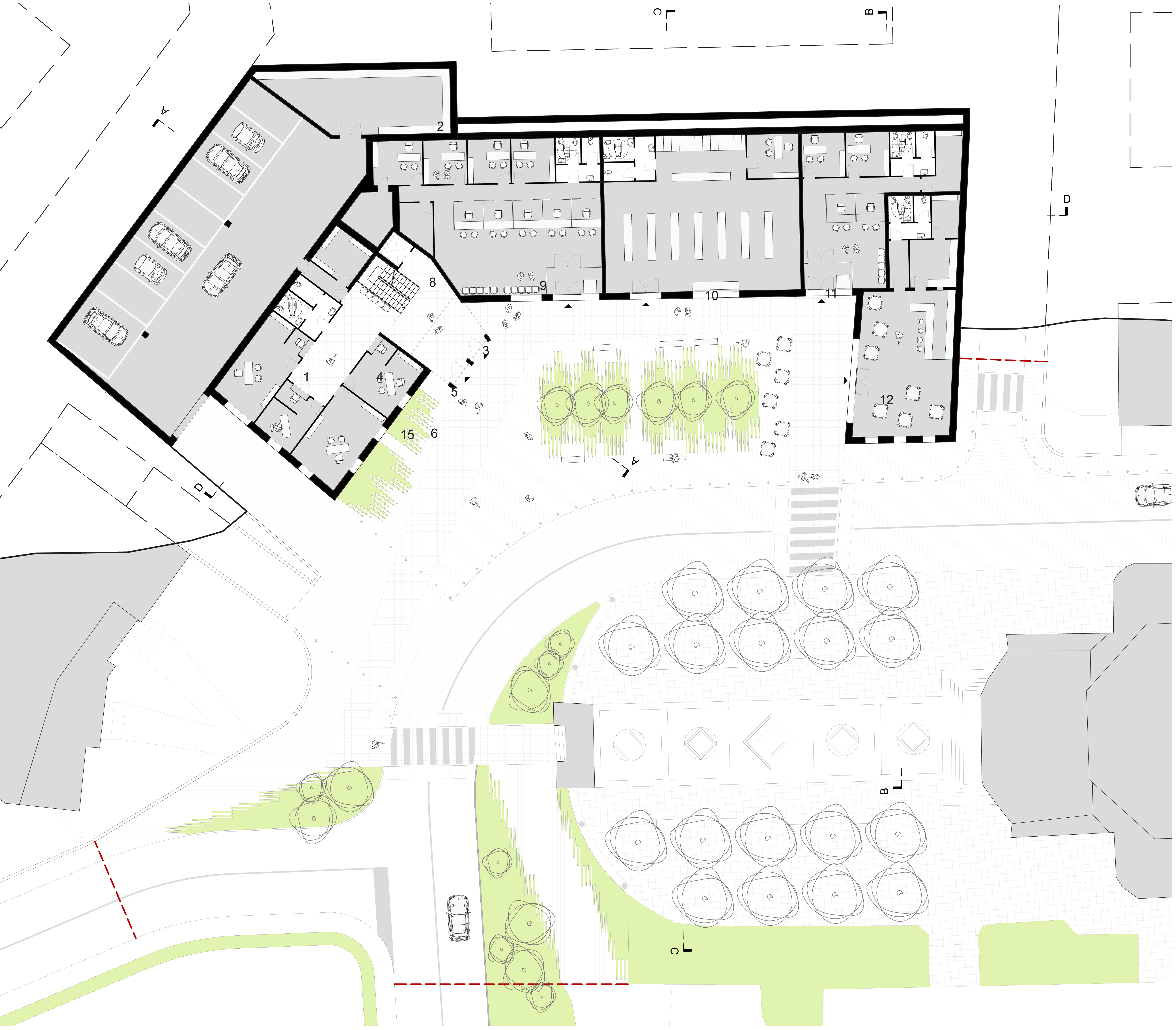 Letti i segni principali del territorio, il progetto si pone come obiettivo quello di creare una piazza che si integri col sistema degli spazi aperti esistenti, considerando l’ambiente urbano come fosse composto da diverse stanze tra loro interconnesse, portando l’intimità dell’interno all’esterno. Ciò anche per calarsi nella misura prevalente percepita in Cenate, cioè “’l’uomo”. Si vorrebbe far sentire a proprio agio i cittadini nella loro nuova piazza, stimolando così un maggiore senso di appartenenza alla comunità. Il nuovo edificio si porrà come nuovo riferimento per Cenate e il suo linguaggio architettonico dovrà esprimere la autorevolezza tipica degli edifici delle amministrazioni pubbliche italiane, conservando allo stesso tempo le proporzioni equilibrate col contesto. L’edificio progettato si ancora al terreno mediante il blocco del piano terra, un volume continuo, pensato come estrusione della roccia sedime di progetto e secondo le linee direttrici, matrici del tessuto urbano preesistente. Questa strategia permette di liberare la porzione di lotto adiacente al sagrato della chiesa, che sarà legata ai nuovi spazi aperti, delineando così il nuovo centro di Cenate Sopra. Il piano primo è generato a partire dal volume destinato ad auditorium e sala consiliare, una sorta di cannocchiale puntato verso il fulcro del paese. A ventaglio si dispongono poi gli altri volumi che spiccano dal basamento, come il profilo del restrostante gruppo del Monte Misma.